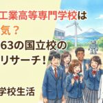 千葉県で理系進学を目指すお子さんを持つ保護者の皆さん、「木更津工業高等専門学校」という選択肢をご存知ですか?偏差値63という難関校でありながら、国立のため学費は年間約32万円と経済的な負担が少なく、さらに卒業後は約40%が筑波大学や千葉大学などの国立大学へ編入しているという実績があります。