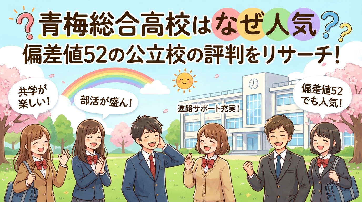 東京都青梅市にある青梅総合高校は、1940年創立の歴史ある公立校でありながら、偏差値52と標準的なレベルで多様な進路実績を誇っています。お子さんの高校選びで「総合学科って普通科と何が違うの?」「部活動は充実しているの?」と疑問をお持ちの保護者の方も多いのではないでしょうか。