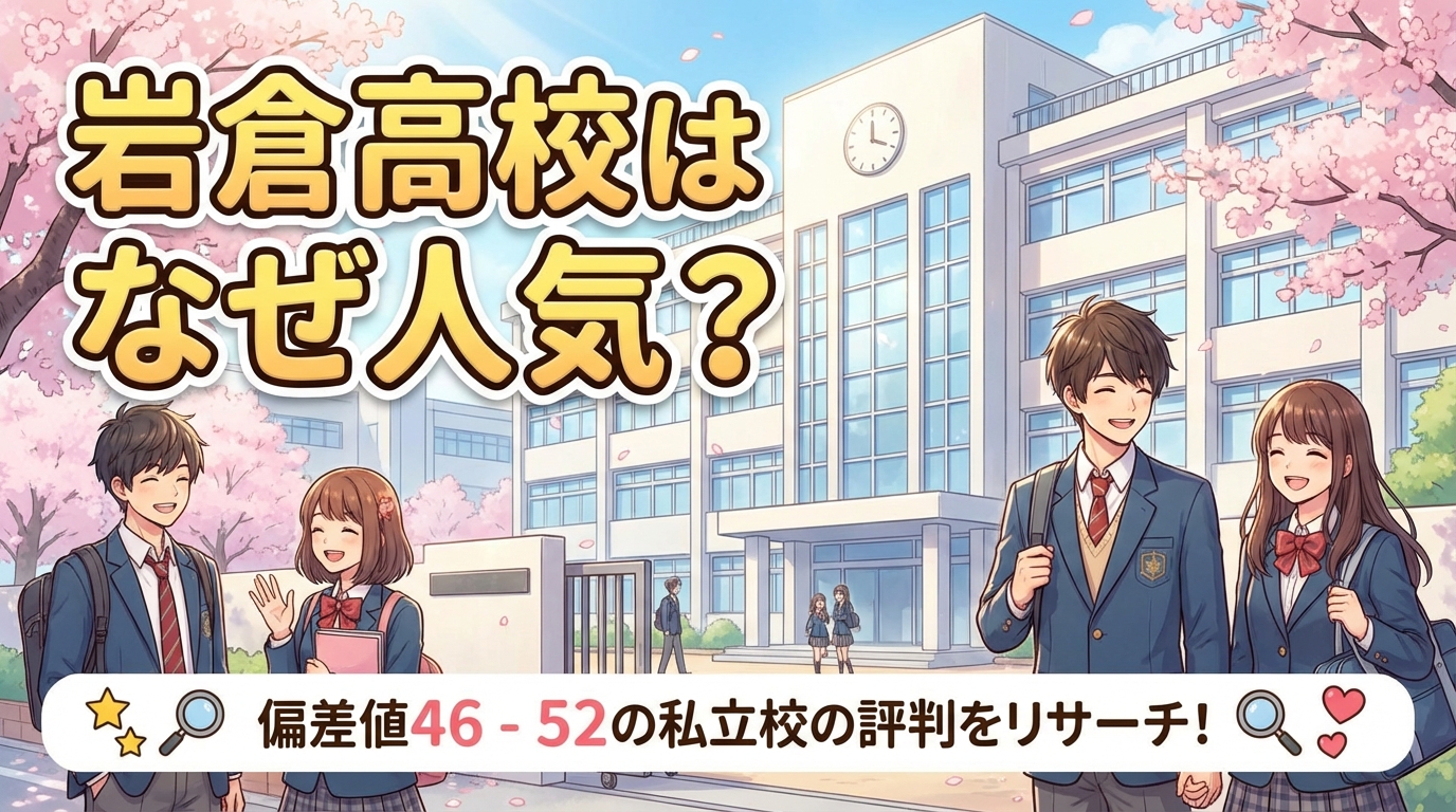 この記事では、岩倉高校の偏差値や入試情報、部活動の実績、学費や進路状況まで、受験を検討する上で知っておきたい情報を網羅的に解説します。学校の基本データから周辺環境、そして気になる評判まで詳しくお伝えしますので、志望校選びの判断材料としてお役立てください。