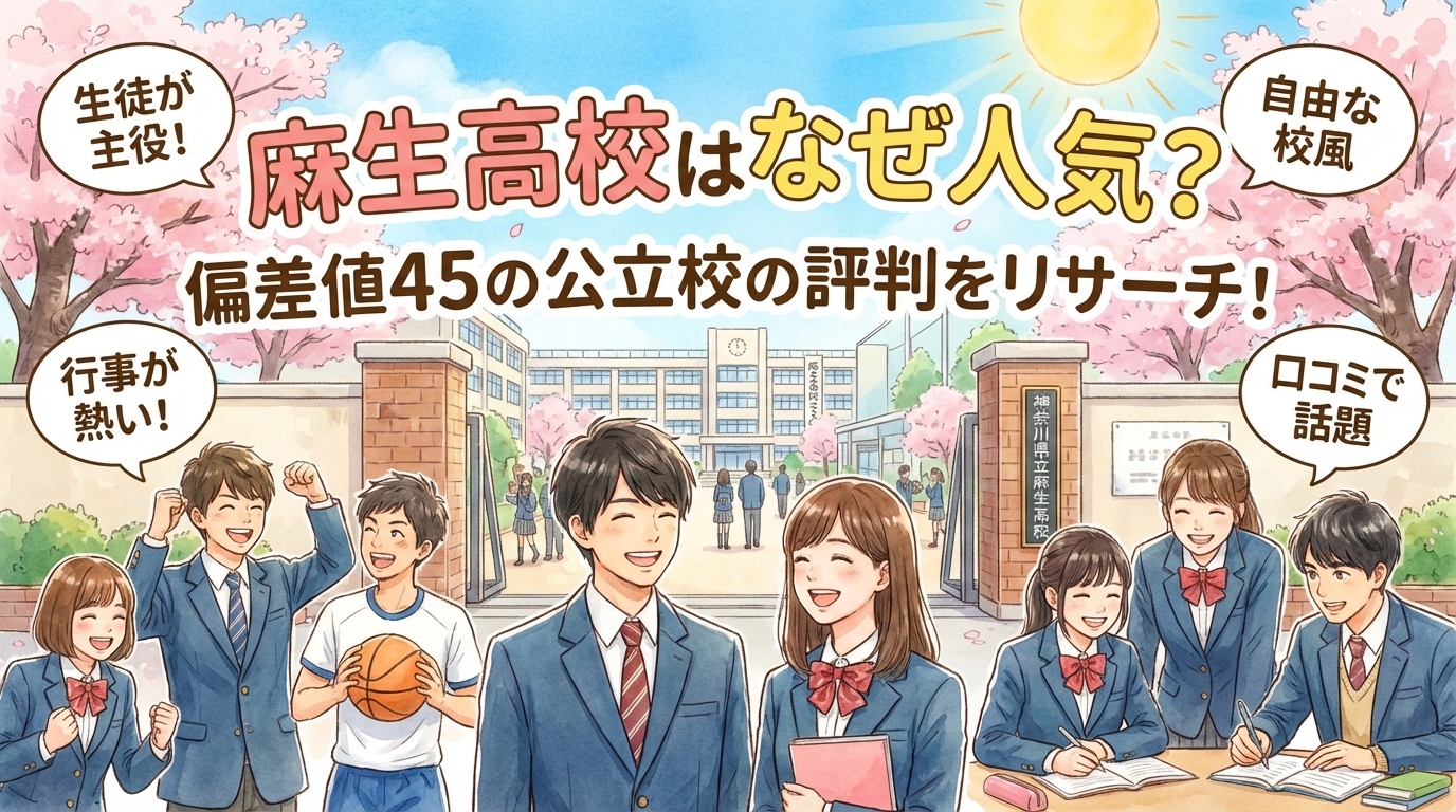 麻生高校は、1929年創立の長い歴史を持つ神奈川県の公立高校です。偏差値45で学力レベルは標準から中堅に位置し、幅広い学力層の生徒が受験できる学校として人気を集めています。