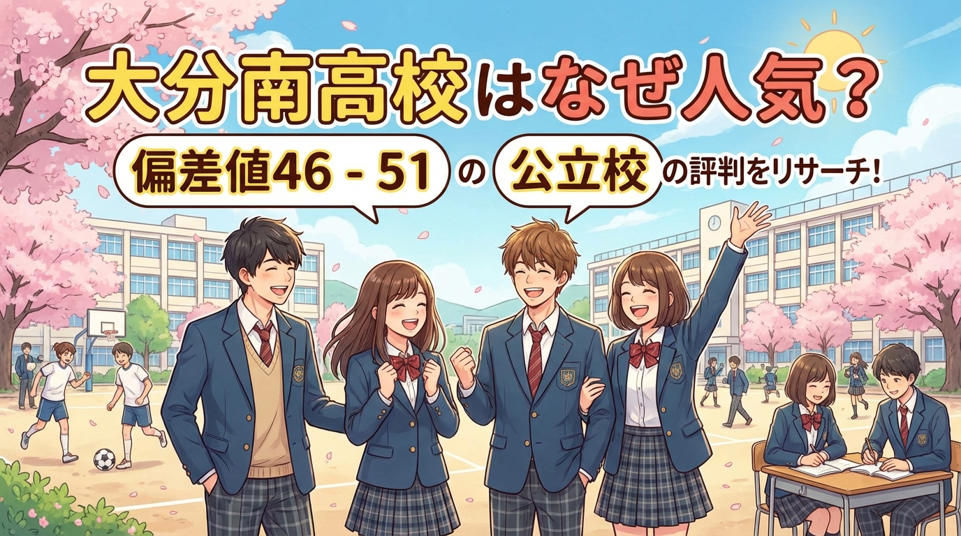 この記事では、大分南高校の基本情報から偏差値・入試情報、部活動や学校行事、気になる学費や進路実績まで徹底的にリサーチしました。この記事を読めば、大分南高校があなたやお子さんに合った学校かどうか、具体的に判断できるようになります。