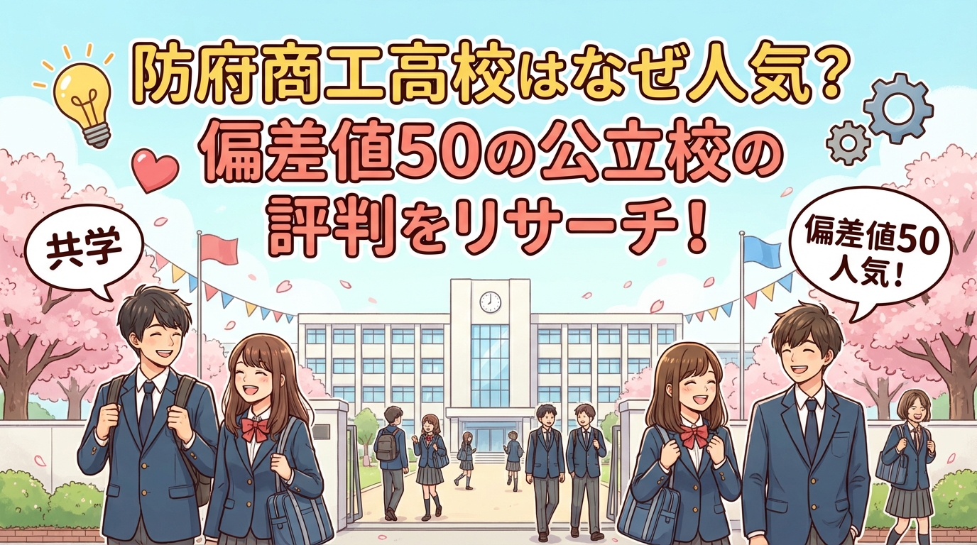 この記事では、防府商工高校の偏差値や部活動、学校生活の特徴から入試情報まで、受験を検討する上で知っておきたい情報を徹底的にリサーチしました。進路選びで迷っている方の不安を解消できる内容をお届けします。