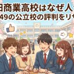 偏差値49という数字は、特別に高い学力が求められるわけではなく、中学校での基礎的な学習内容をしっかり理解していれば十分に合格を目指せる水準です。商業科として専門的な学びを提供しながらも、幅広い生徒が挑戦できる環境が整っています。