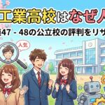 工業高校という特性上、普通科高校とは異なる専門的なカリキュラムが組まれています。偏差値47から48という数値は、基礎学力をしっかり身につけていれば合格を目指せる範囲です。