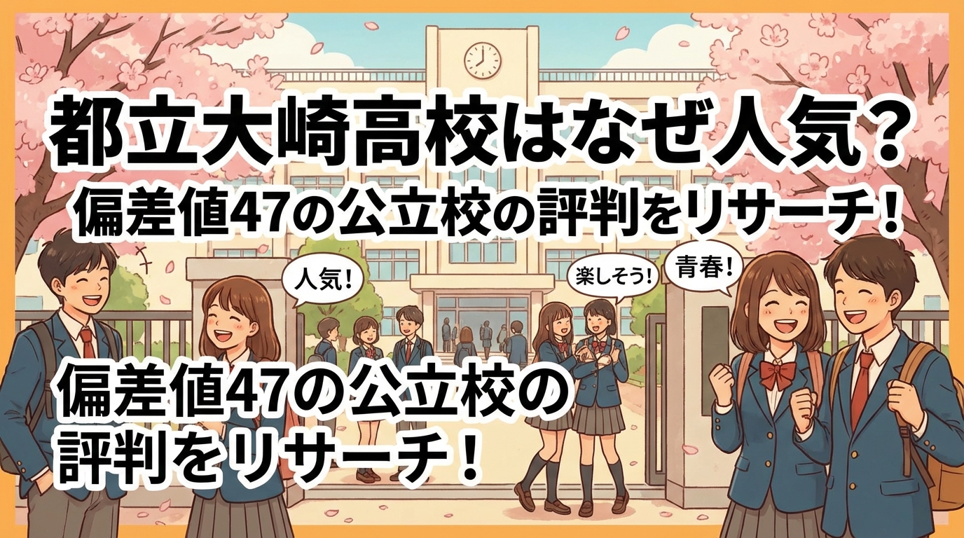 この記事では、都立大崎高校の偏差値や入試難易度、戸越公園駅からのアクセスと周辺環境、そして部活動や学校行事の実態まで、受験前に知っておきたい情報を徹底解説します。